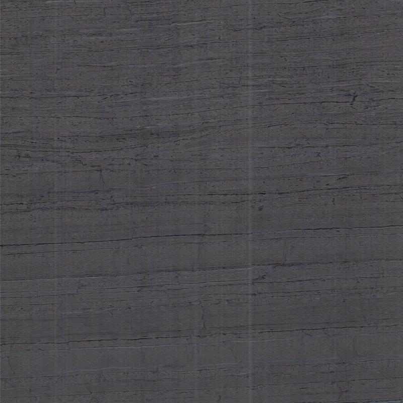 A placa de mármore Buffett Wood Grainy apresenta tons de azul escuro, ocre e cinza profundo, com um padrão ondulado sutil na superfície. Esta pedra natural é especialmente indicada para projetos comerciais como hotéis, edifícios comerciais, butiques de luxo, spas e shoppings.